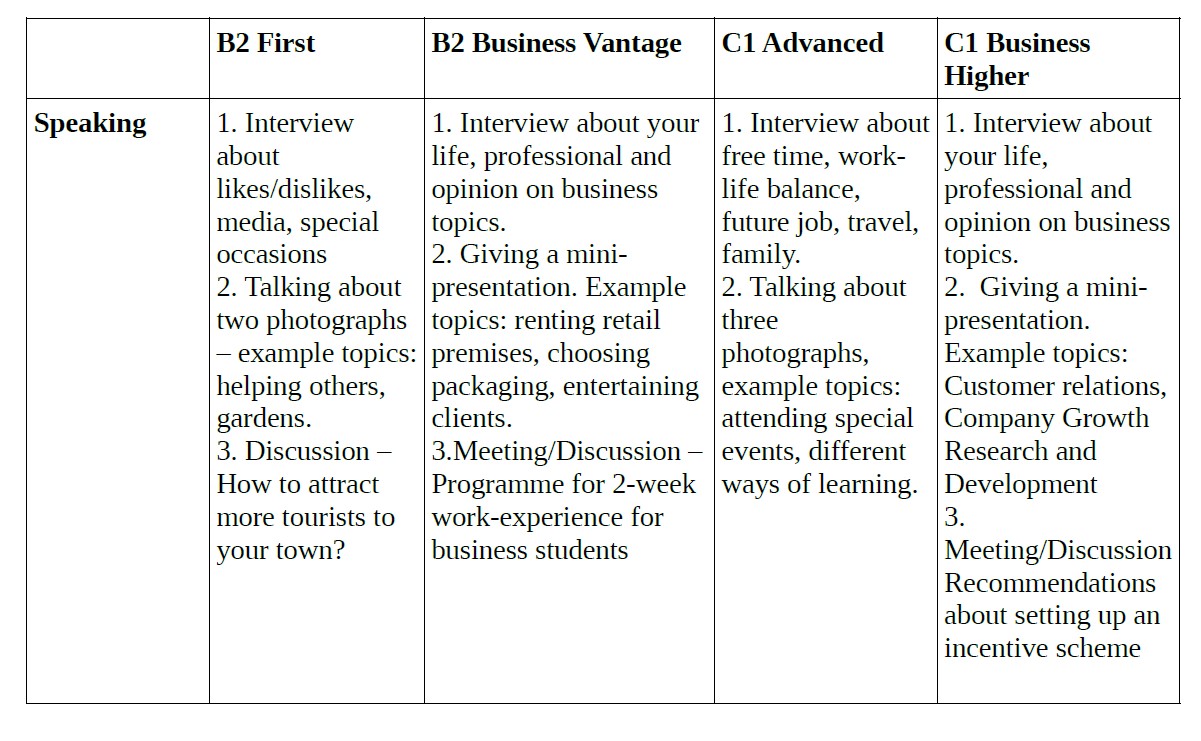 Comparison of Topics in a Speaking Exam for the B2 First, the B2 Vantage, the C1 Advanced, the C1 Higher Exams by Cambridge English